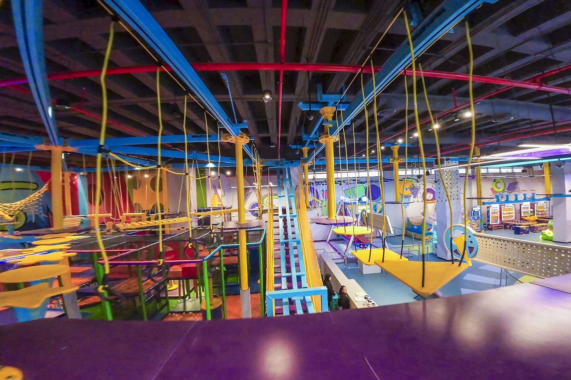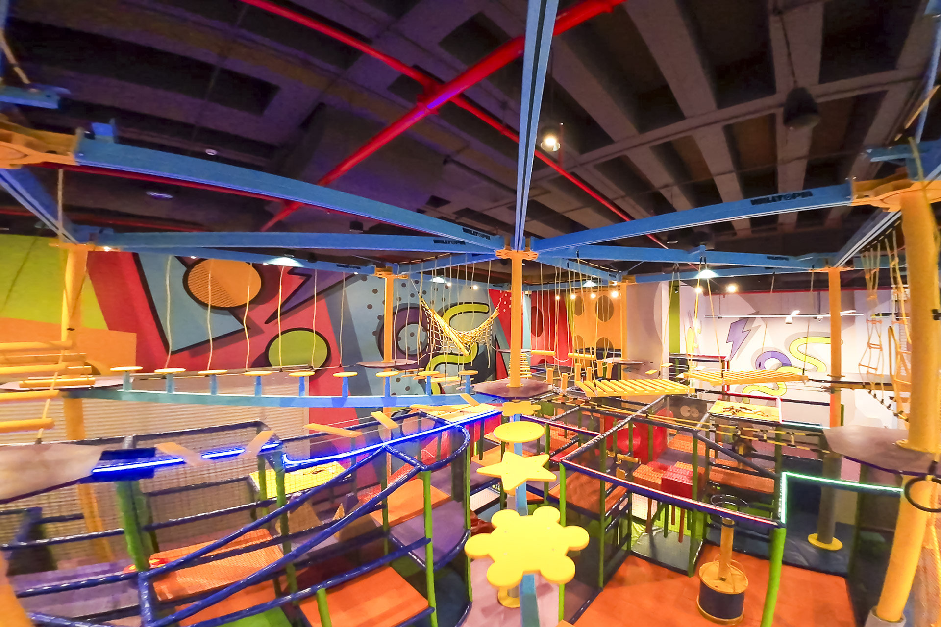 - A suspended Ropes Course, utilizing the ceiling height