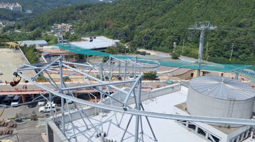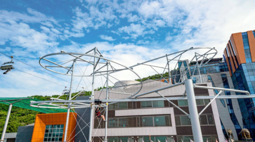 The Rollglider installation at U-World Adventure Park in Yeosu, South Korea, represents the longest Rollglider ever built to date, spanning 806 meters in a closed-loop configuration. This large-scale project showcases the full potential of Rollglider technology in delivering a high-capacity aerial experience that complements the park’s dynamic environment.