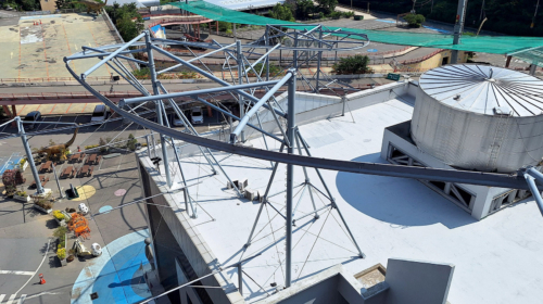 One of the key achievements of this project lies in its integration with diverse structural elements, as the track is mounted across multiple types of infrastructure, including buildings and support columns. The result is a seamless aerial system that demonstrates collaborative engineering precision and highlights Rollglider’s adaptability to complex architectural environments.
