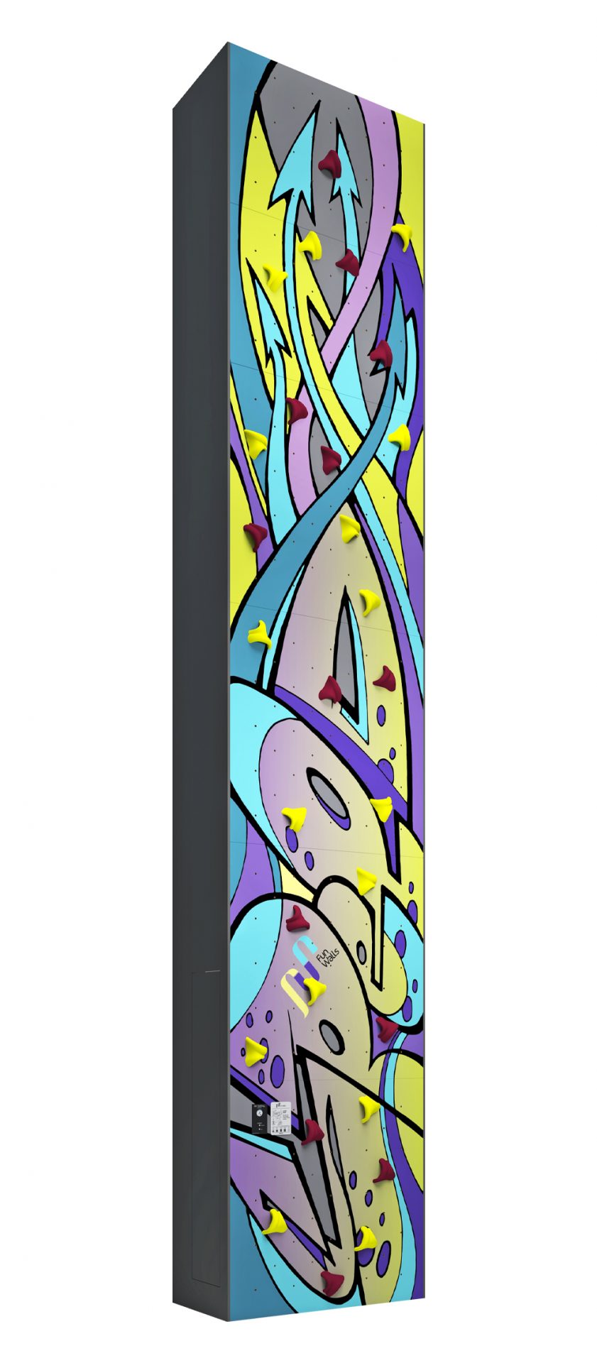 You need to anchor two base steel plates, each with four anchors at the bottom, and also secure two attachment points at the top. The top attachment points may vary depending on the installation space to properly support your Graffiti Speed. The structure should be anchored in solid concrete slab with a minimum thickness of 15cm. To make sure that your floor can support Graffiti Speed please find attached the static calculations of the loads Walltopia Standard Loads File in the downloadable section and always consult with your engineer or a qualified professional.