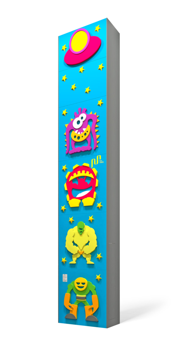 Aliens comes with our standard steel structure which needs to be anchored in the floor and on the top of the frame. Structure for outdoor locations comes hot dip galvanized which ensures its durability and resistance from weather conditions all around the world