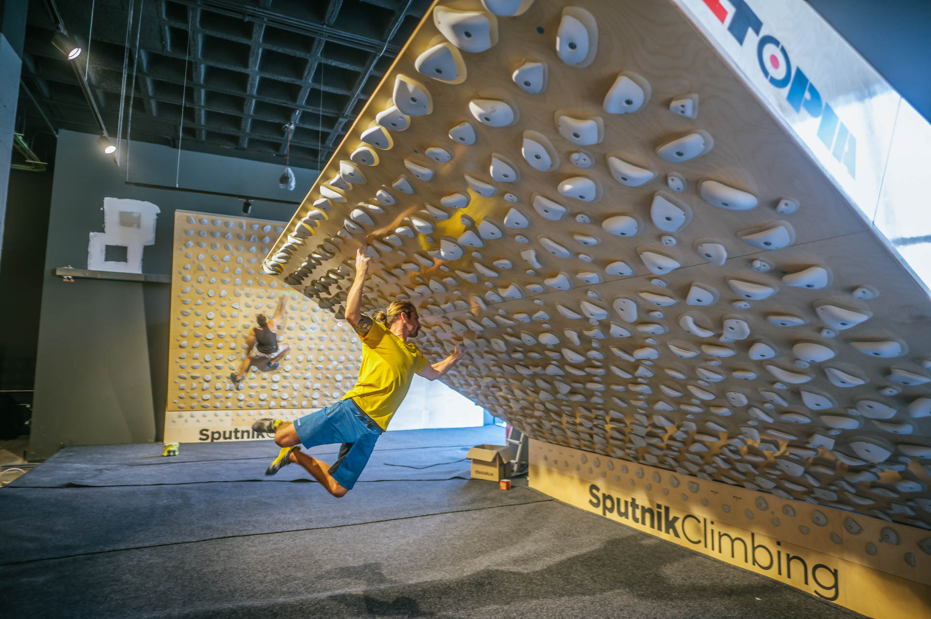 It’s a common practice for climbing gyms to build training walls along building corners. We developed a signature design that can be taken as a template and adjusted based on the client’s preferences. One side of the unit is a 40° overhanging wall (angle may vary upon request) with a size that can accommodate a commercial Kilter Board or a combination of two smaller boards such as a Moon board, a full size Tension board, a full size Kilter board. The other side of the unit consists of standard campus wall with a width, depending on the number of campus lines required.
